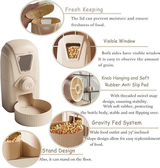 Hanging Cage Automatic Pet Food Water Dispenser 34oz, Large Capacity Feeder Gravity Refill Food and Siphon Suction Water Set for Dog Cat Rabbit Chinchilla and Ferret (Food Dispenser)