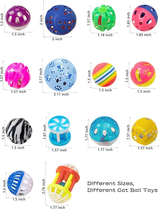 10-Pack Colorful Cat Toy Balls with Bells for Indoor Cats and Kittens (1.5'' - 2.3'', Cat Toys Mega Set)