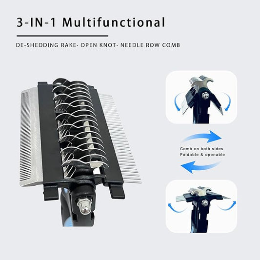 3-in-1 Pet Grooming Brush for Dogs & Cats – Double Sided Deshedding Tool with Stainless Steel Teeth, Detangler Comb & Undercoat Rake | Ergonomic Handle for Matted Fur Removal, Safe for Long/Short Hair