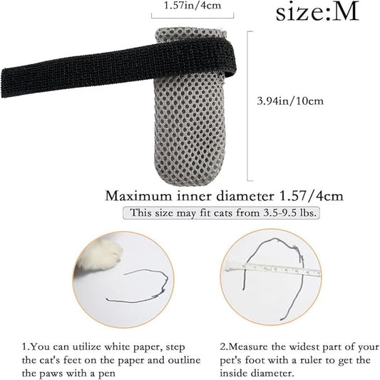 8 Pack Cat Mittens to Prevent Scratching, Adjustable Breathable Mesh Cat Booties & Claw Covers - Anti Scratch Gloves for Bathing, Nail Trimming - 4 Black & 4 Grey, Paw Inner Diameter up to 1.57 Inches