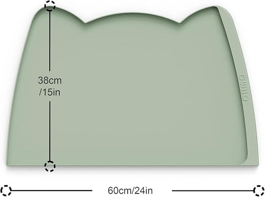 OHMO - Cat Food Mat, Silicone Pet Feeding Mat for Floor Non-Skid Waterproof Dog Water Bowl Tray, Easy to Clean Pet Placemat (Sage Green, 18 * 9.8'')