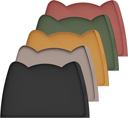 OHMO - Cat Food Mat, Silicone Pet Feeding Mat for Floor Non-Skid Waterproof Dog Water Bowl Tray, Easy to Clean Pet Placemat