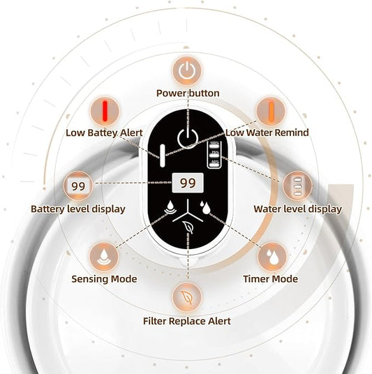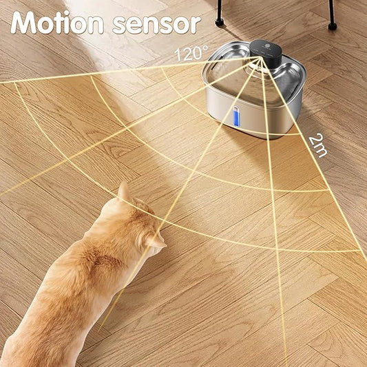 Wireless Cat Water Fountain with Stainless Steel Tray, Battery Operated Cat Fountain - 102oz/3L Automatic Pet Water Dispenser, Easy Clean with Motion Sensor for Cats, Dogs-2Filters