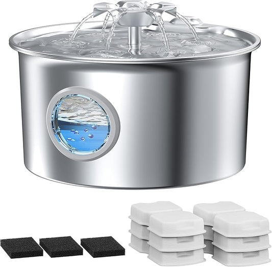 Cat Water Fountain Stainless Steel: 108oz/3.2L Water Fountains for Cats Indoor, Cat Water Fountain, Ultra Quiet, Water Level Window, Dog Water Fountain - 4 Filters - 1 Sensor