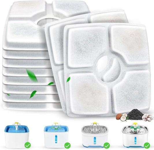 Cat Water Fountain Filter Replacement, 10 Pack Cat Fountain Filters Compatible with Top Square 84oz/2.5L Automatic Pet Fountain Dog Water Dispenser, 3 Filtration System Replacement Pet Filters