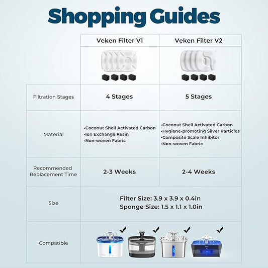 Veken Cat Water Fountain Filter, Classic 4 Pack Replacement Filters & 4 Pack Replacement Pre-Filter Sponges for 50oz, 84oz, 95oz Automatic Pet Fountain Dog Water Dispenser