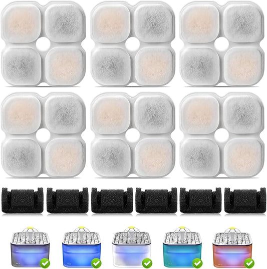 AONBOY Cat Water Fountain Filters, 6 Filters + 6 Cat Fountain Sponge, Suitable for AONBOY Pet Fountain S3-SC, Multiple Filtration, Isolates Floating Hairs and gets rid of Odors