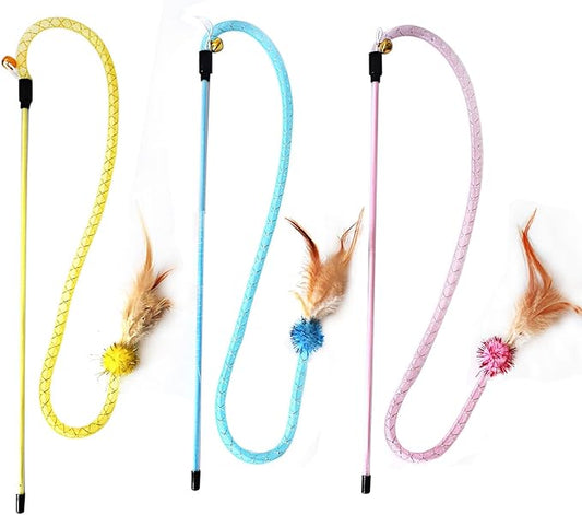 IUHKBH Cat Wands, 3 Colors Mesh Tube Teaser Toys Cute Kitten Wand Interactive Kitty Toy Safe Cat Stuff for All Breed Sizes
