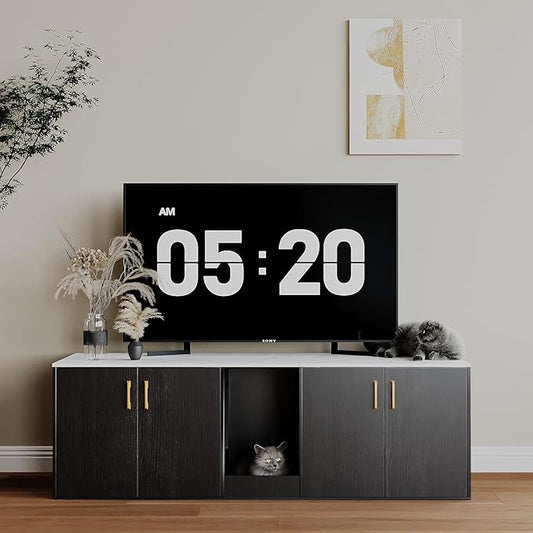 Cat Litter Box Enclosure for 2 Cats,cat Litter Box Enclosure Furniture with Double Room,Stackable,Indoor,Large cat Cabinet,pet House Side Coffee Table,White and Black (Black)