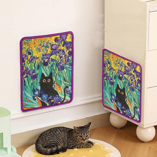 Sisal Cat Scratching Mat – Anti Scratch Furniture Protector for Walls, Couches, Cabinets, Doors & Carpet, 15x11.8 Inch, Shedding-Resistant Cat Scratcher with Hook and Loop Fastener (Flower Field)