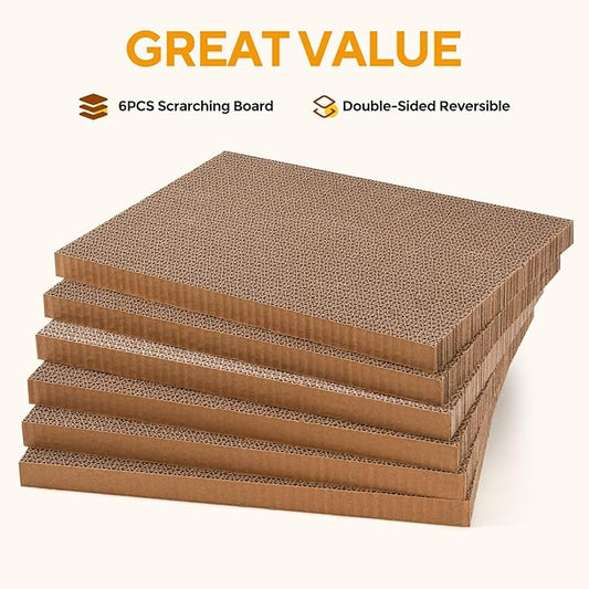 AUSCAT Cat Scratcher Box with 6PCS Cat Scratching Board, Cardboard Cat Scratchers for Indoor Cats, Reversible Cat Scratch Pads for Small Medium Kittens, 14.6" L x 10.9" W x 5.2" H