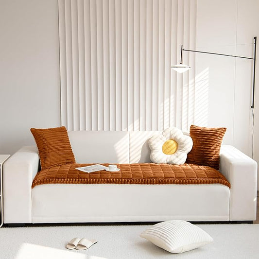 Faux Fur Plush Dog Couch Cover 3D Stripe Fuzzy Sofa Cover Non-Slip Fluffy Dog Bed Cover Pet Blanket Sofa Couch Furniture Protector for Puppy Large Dog Cat (Coffee,35"x35")