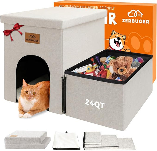 Dog Stairs with Condo 23" H, 4-Step Wider Folding Storage Pet Stairs Gift for Small/Medium/Large Old Dogs Cats, Dog Steps for High Beds Window, Ramp for Climbing Car Up to 200 lbs, Beige