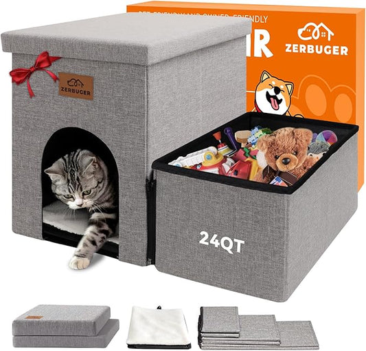 Dog Stairs with Storage 23" H, 4-Step Wider Dog Steps for High Beds Window, Folding Sturdy Pet Stairs Gift for Injured Old Dogs Cats, Ramp for Climbing Car Up to 200 lbs,(Gray, No Condo)