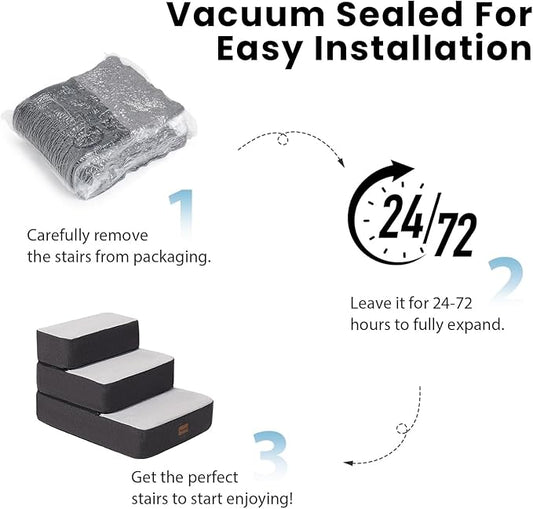 Dog Stairs and Steps for Beds Or Couches, 3-Step Pet Stairs & Steps for Small Dogs and Cats, Soft and Non-Slip Dog Ramp for Older Dogs,Pet with Joint Pain,Easy to Walk