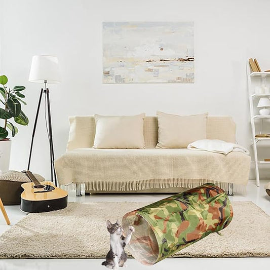 iCAGY Foldable Spiral Cat Tunnel - Indoor Toy for Small Cats, Kittens, and Rabbits - Tube for Interactive Play and Outdoor Fun - Pet Activity Toy Camouflage Green 20" 3 Pcs