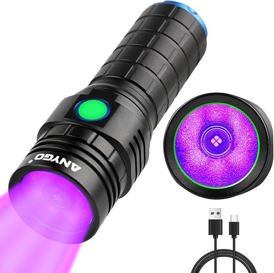 UV 395nm Flashlight USB Rechargeable, Blacklight Flashlight, LED Torch with White and Ultraviolet Light Combo, Black Light Pet Urine Detector for Dog Cat Pee, AC Leak, Scorpions, Rocks, Resin