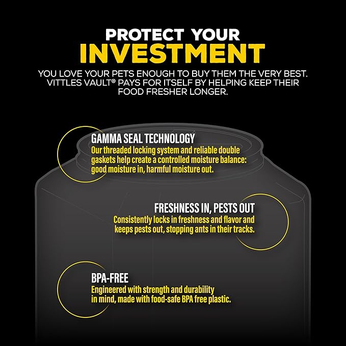 - SAY GOODBYE TO PESKY PESTS: Gamma Seal Technology protects your pet's food by locking in moisture and keeping ants and pests out, making it great for a sealed dog food storage container