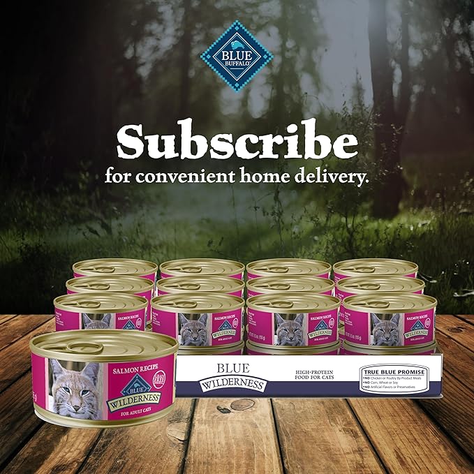 - Contains Twenty-four (24) 5.5-oz cans of BLUE Wilderness High Protein Grain Free, Natural Adult Pate Wet Cat Food, Salmon