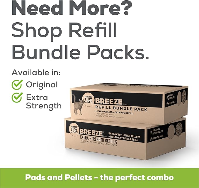 - Tidy Cats BREEZE pads are designed to last and control ammonia odor for 7 days for one cat, includes 10 pads