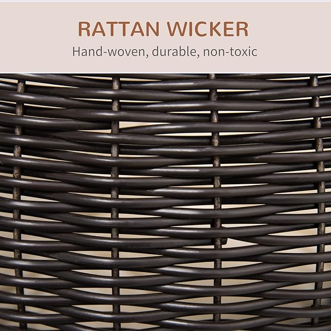 PawHut Elevated Cat Bed with Rotatable Egg Chair Pod, Cat Basket Bed with Thick Cushion, Natural Mat Grass Woven Kitty House, Coffee