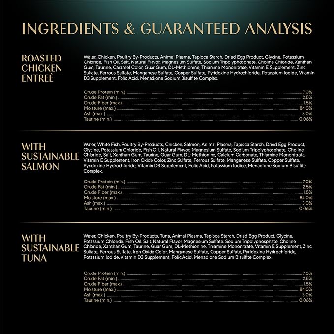- Cuts In Gravy: Succulent cuts of Chicken, Salmon, or Tuna covered in delicious gravy for a delectable meal sure to delight your favorite feline