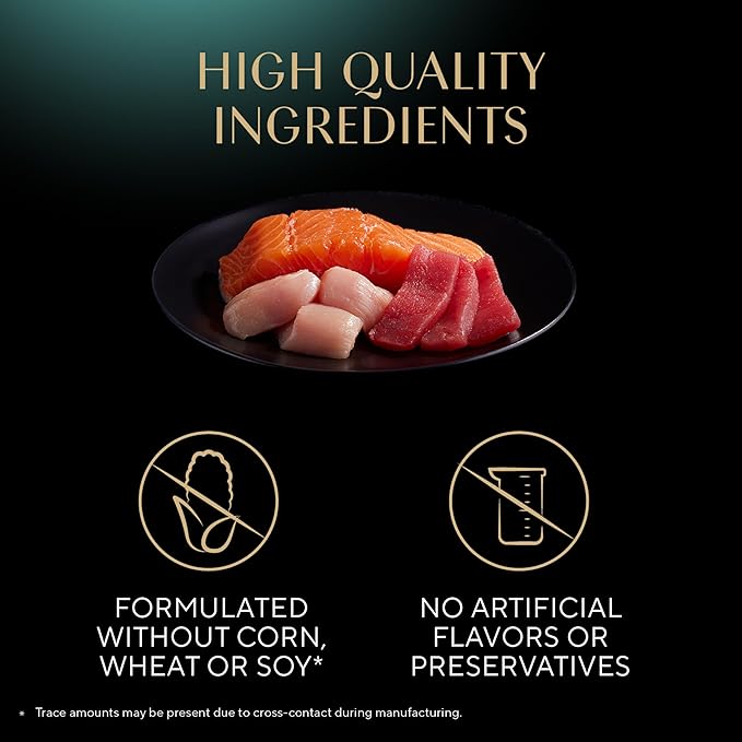 - Delicious Recipe: Sheba Perfect Portions Wet Cat Food Cuts in Gravy is formulated without grains, corn, or soy and contains no artificial flavors or preservatives; although trace amounts may be present due to cross-contact during manufacturing