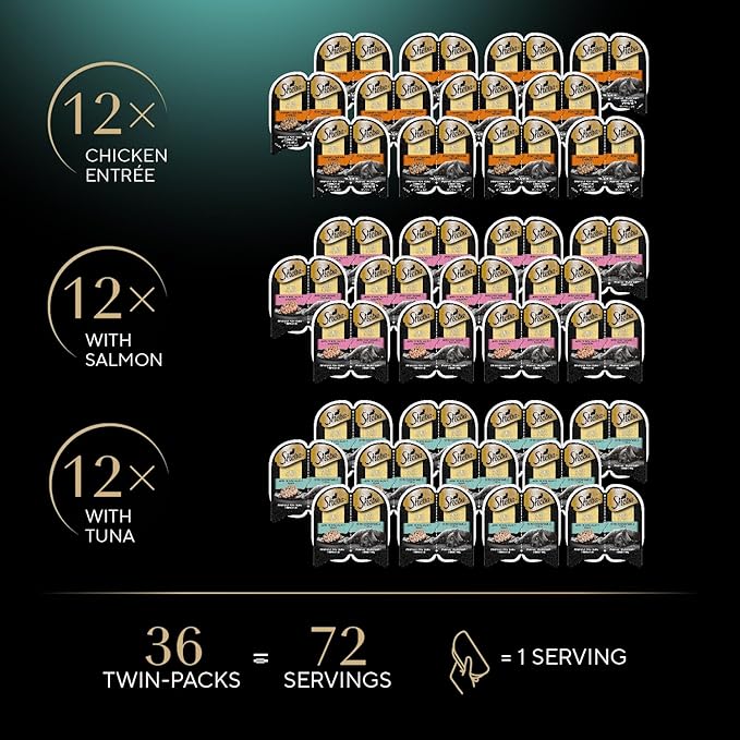 Sheba Perfect Portions Wet Cat Food Cuts in Gravy Variety Pack, Roasted Chicken Entree, with Sustainable Salmon, 2.6 oz. Twin-Pack Trays (18 Count, 36 Servings) (Pack of 2)