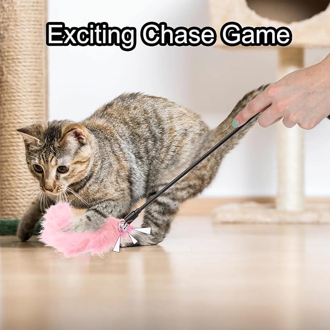 - 【HEALTHY TO CATS】You can use the cat feather wand toy to make your cat move and exercise. It is a good way to keep your cats health and fit for life. Enjoy the funny exerciser with your cat.