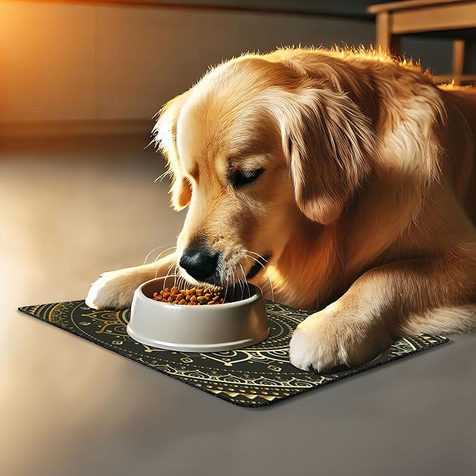 - Features - Fun prints and long-lasting colors. Find any theme and color you want to match your room decor or your pet’s personality. This pet feeding mat can even feature your cat's or dog’s favorite item or design, adding a cheerful touch to your pet’s feeding area.