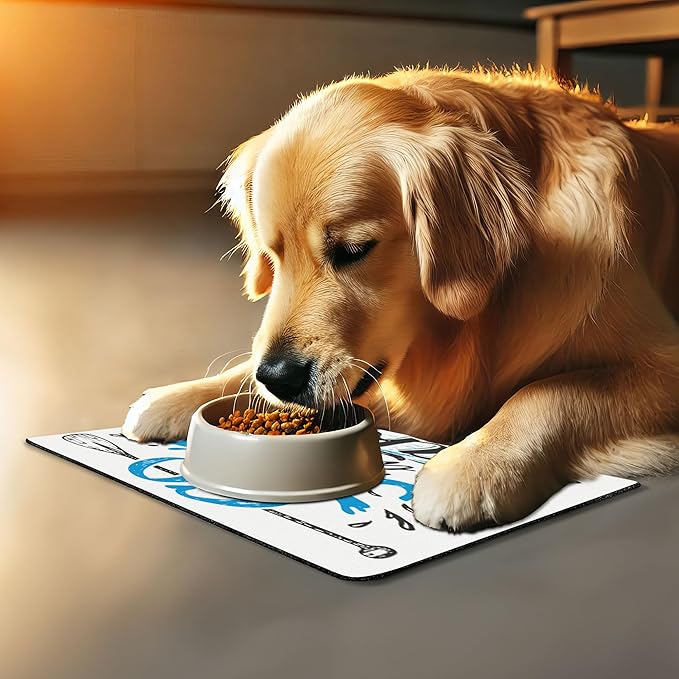 - Features - Fun prints and long-lasting colors. Find any theme and color you want to match your room decor or your pet’s personality. This pet feeding mat can even feature your cat's or dog’s favorite item or design, adding a cheerful touch to your pet’s feeding area.