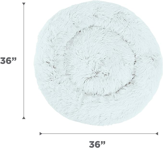 Best Friends by Sheri Original Calming Donut Dog and Cat Bed, Shag Faux Fur, Frost Gray, (36in x 36in) - Anxiety Relief for Pets Up to 100 lbs