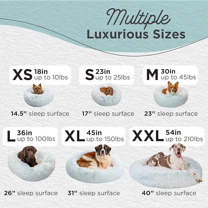- Calming Dog Bed: 36-inch donut cuddler provides a cozy haven to help soothe anxiety and stress in large dogs up to 100 lbs; breeds such as Australian Shepherd, Husky, Border Collie, Labrador or Golden Retriever, German Shepherd, Boxer, Poodle, Dalmatian