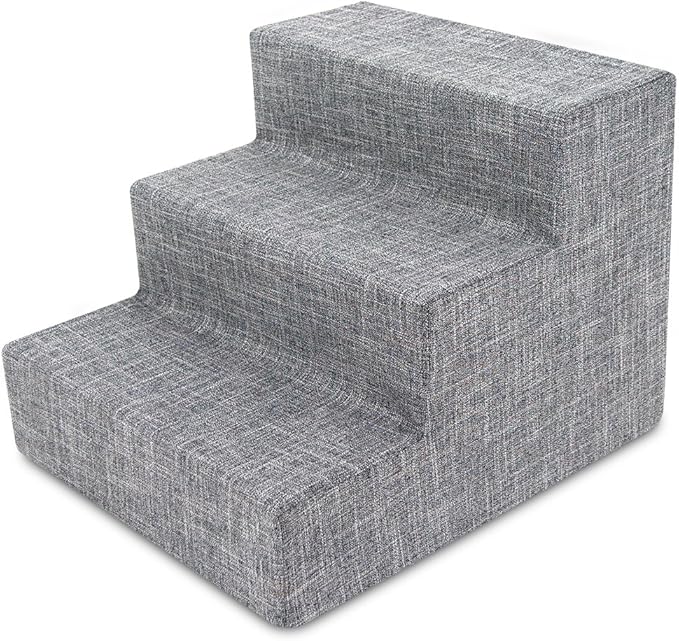 Best Pet Supplies Dog Stairs & Steps - Foam Steps for Small Dogs & Cats, Non-Slip Indoor Balanced Pet Step Support, Dog Ramp, No Assembly, Ash Gray Linen, 3-Step (13.5-inch Height)