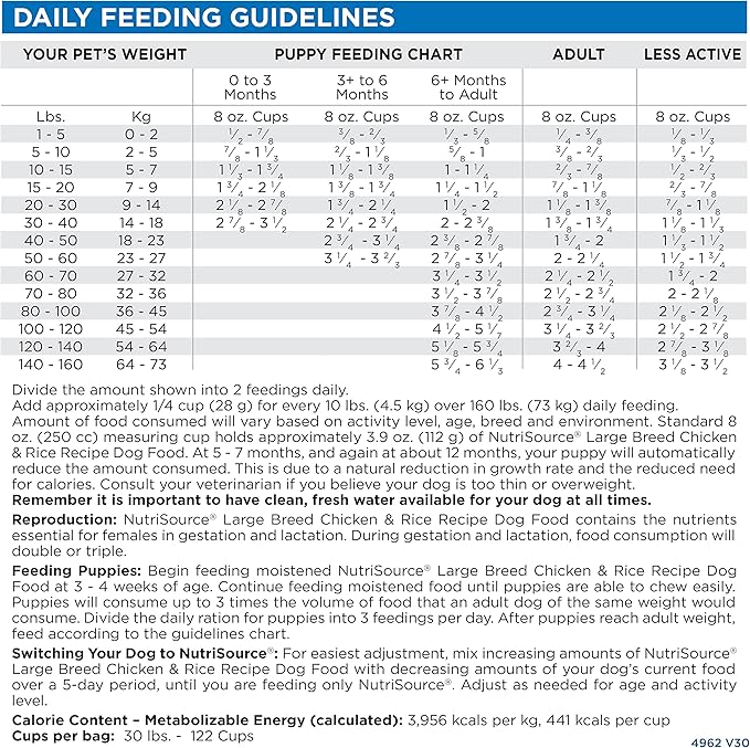 - Contains One 30LB Bag of NutriSource Adult Dog Food, Made with Chicken and Rice, Large Breed, with Wholesome Grains