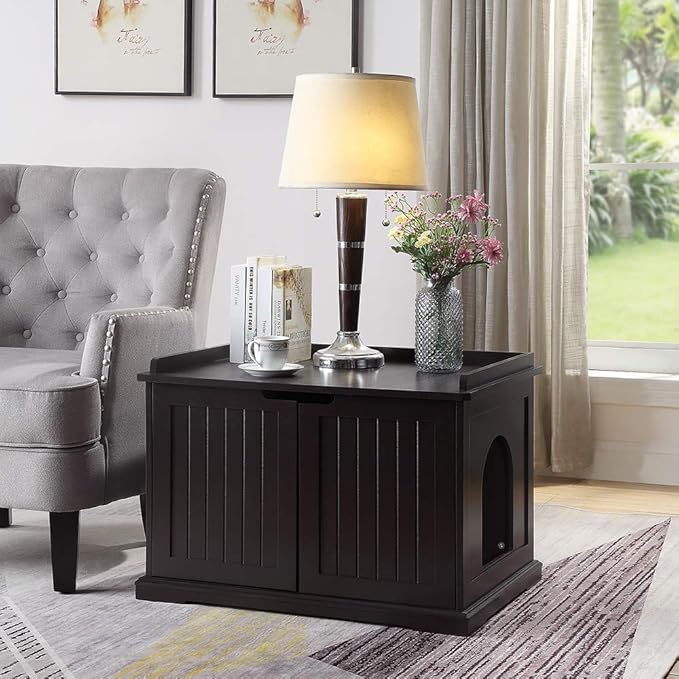 - DURABLE DESIGN: Crafted with strong and durable pressed wood. Accommodate most of the litter boxes.