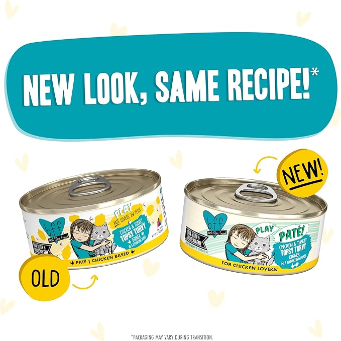 Weruva B.F.F. Play - Best Feline Friend Paté Lovers, Aw Yeah!, Chicken & Turkey Topsy Turvy with Chicken & Turkey, 5.5oz Can (Pack of 8)