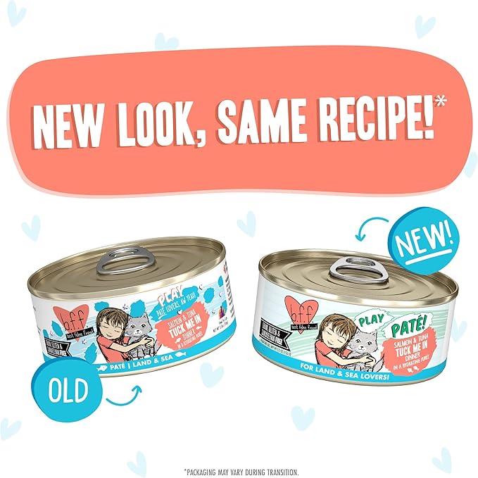 Weruva B.F.F. Play - Best Feline Friend Paté Lovers, Aw Yeah!, Salmon & Tuna Tuck Me in with Salmon & Tuna, 5.5oz Can (Pack of 8)