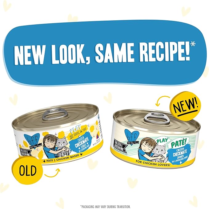 Weruva B.F.F. Play - Best Feline Friend Paté Lovers, Aw Yeah!, Chicken Checkmate with Chicken, 5.5oz Can (Pack of 8)