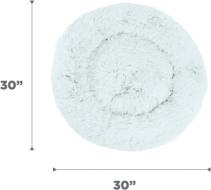 Best Friends by Sheri Original Calming Donut Dog and Cat Bed, Shag Faux Fur, Frost Gray, (30in x 30in) - Anxiety Relief for Pets Up to 45 lbs
