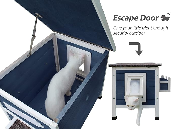 Rockever Outdoor Cat House, Large Outdoor Houses for Feral Cats Wooden Outside Cat Shelter Weatherproof with Escape Door