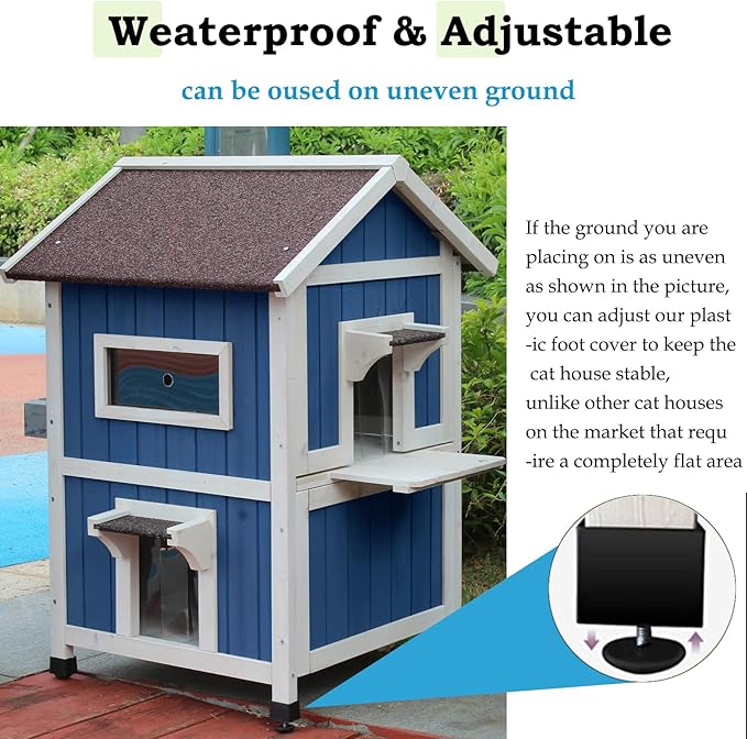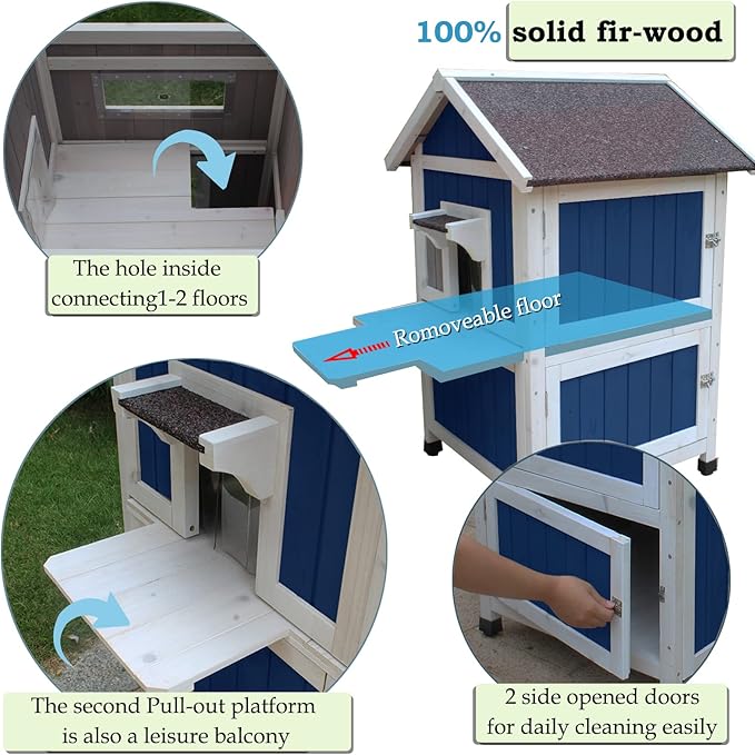 - Easy to clean: Our outdoor cat house top floor can be pulled out for cleaning, the balcony and the floor belong to a whole, making it more stable, under floor is 2 parts, which can be assembled and disassembled within 1 minute for daily cleaning