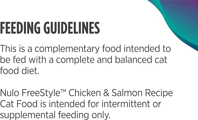 - CHICKEN & SALMON RECIPE - Nulo Freestyle Cat & Kitten Wet Cat Food Pouch with limited ingredients for maximum protein and nutrition contains only chicken, salmon, and chicken/salmon broths for a healthy food complement, treat, or snack. Pack of 24, 2.8 Oz each.
