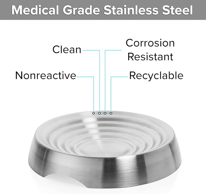 - ⭐️ MADE FOR PETS. Made from surgical stainless steel. Holds 5 ounces of dry or wet food to prevent overfeeding. Saucer like, this cat dish is designed specifically for cats to provide whisker relief and stress free mealtime.