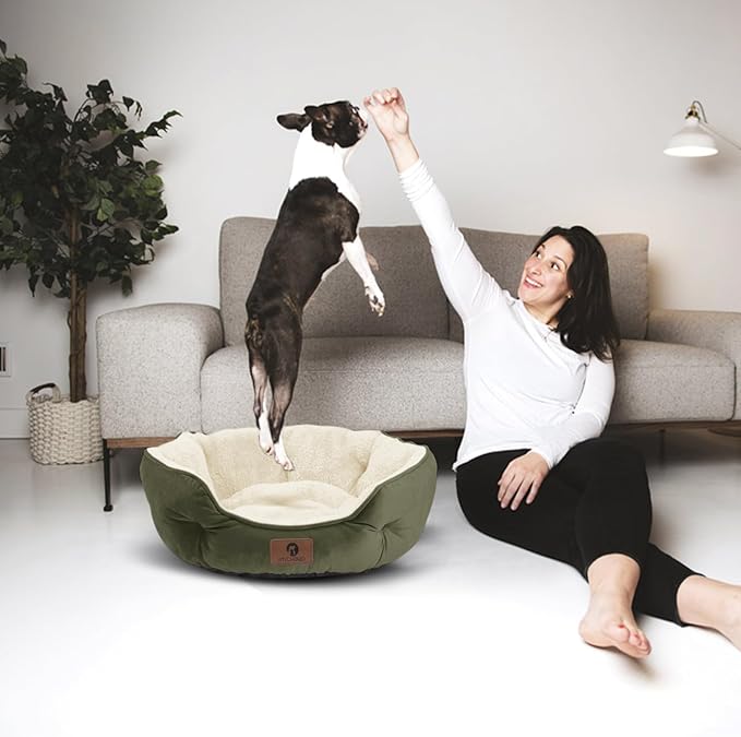 Asvin Small Dog Bed for Small Dogs, Cat Beds for Indoor Cats, Pet Bed for Puppy and Kitty, Extra Soft & Machine Washable with Anti-Slip & Water-Resistant Oxford Bottom, Green, 20 inches