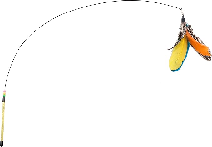 Fashion's Talk Feather Wire Wands Kitten Toys Worm Teaser Wand Cat Toy with Replacement Pack