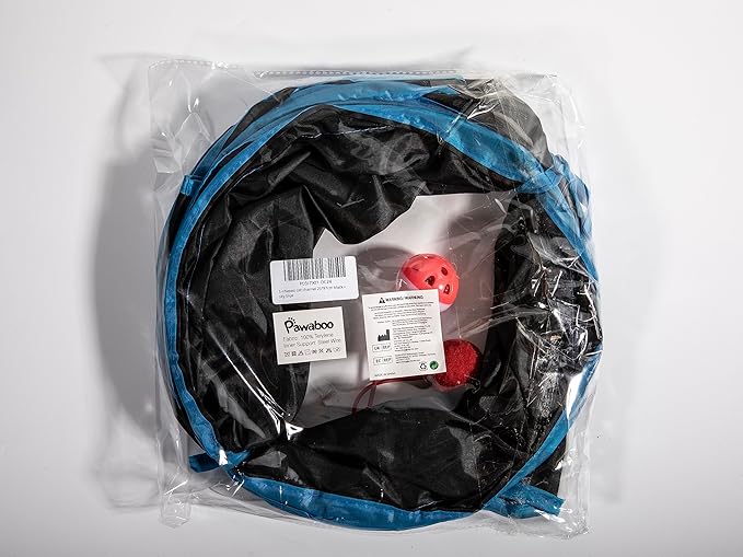 Pawaboo Cat Toys - S-Shaped Tunnels 25x97cm, Extensible Cat Play Tent with Balls and Bells, Interactive Maze House for Kittens and Small Animals, Blue