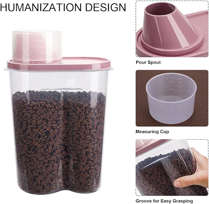 - [FUNCTION]-This airtight pet dog cat bird food container for dry food could keep food fresh for longer and lock moisture out.