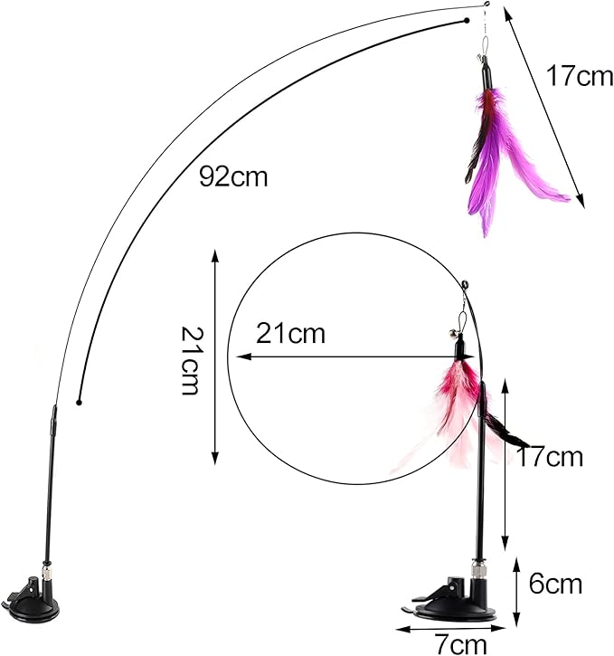 - Size: Cat toy wand: Length 100cm(39.37in), Suction cup: Diameter 7.5cm(2.95in), Faux feather refill: Length 10cm(3.94in)