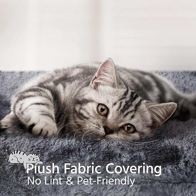 - CAT EAR TOP PERCHES&LARGE CAT HOUSE: The cute cat-ear shaped raised edges of the top perches add a lovely bit of charm and cuteness to the piece.There are also 2 cozy fluffy condos for cats to play hide-and-seek and nap in